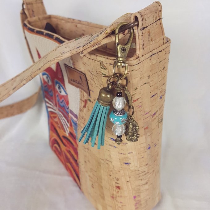Sac à bandoulière Lina en liège naturel à reflet colorés et tissu jacquard.